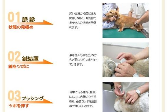 ピア動物病院の公式サイトで、鍼灸治療の流れを紹介しているので、よかったら公式サイトの方もチェックしてくださいね!